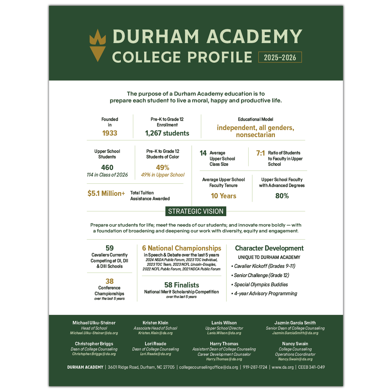 Beyond the initial excitement, the true value of this project lies in its longevity. We delivered a unified, flexible visual system that does more than just look modern—it proactively addresses institutional needs and communication challenges we hadn’t even identified at the start of the process. By providing a scalable foundation for every division and department, I ensured that Durham Academy is now visually equipped to tell its story with clarity and purpose for the next generation of Cavaliers.